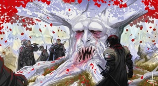 After writing a report to Maester Aemon, the Lord Commander sends Jon to find Samwell Tarly to send the message. Jarman Buckwell's scouts ride out first, followed by Thoren Smallwood's vanguard, Mormont's main force, the baggage train under Ser Mallador Locke, and finally the rear guard under Ser Ottyn Wythers; a total of 200 men and 300 horses. As he rides, Jon exercises his scarred fingers to keep his sword hand from growing stiff and clumsy. He is likely to need his sword hand beyond the Wall, especially now. The black brothers left Castle Black in good spirits, but the silence of the wood has unnerved them all. Not only have the wildlings disappeared, but the game as well. Even the veteran rangers agree the haunted forest has never seemed so haunted.
