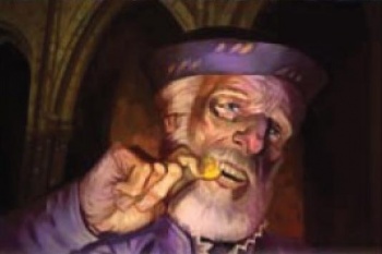 The target is always accompanied by two guards, and the kindly man has forbidden her to kill anyone other than her target, so Arya must stalk the man for several days to find an opportunity. She eventually dispatches him by slipping a poisoned coin into the purse of his client, knowing the man selling insurance will bite into the coin to test its legitimacy. The Kindly Man is pleased by her success, and raises her to the status of an acolyte. He gives her a black and white robe to wear while at the House and restores her face. However, the next day she is to take a new face and leave for her first apprenticeship with someone named Izembaro.