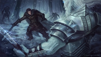 Will turns his head away for a long time before looking back to see that the Others are gone. When he finally dares, Will climbs down, examines Royce's body, then picks up the knight's twisted and broken sword. He decides to bring it back to show to their commanders, hoping Gared is still with the horses. When Will stands up again, Waymar has risen and is standing over him. His remaining eye has turned blue. With an icy cold touch, Waymar's hands go around Will's throat.