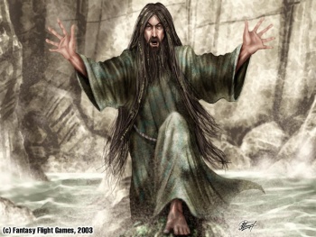 An unknown amount of time after Greyjoy's Rebellion, Aeron went down in a storm, but washed up ashore, safely and unharmed. Due to his near-death experience, he underwent a spiritual reawakening, and dedicated himself to the worship of the Drowned God.[2] He became hard, humorless, and ascetic, living as a hermit on the beach, spreading the word of their god, and became known primarily by his new name, Damphair. The acolytes serving under Aeron, called drowned men, do Aeron's bidding without question, and he is greatly respected by the ironborn in general.[5] He has never failed to resuscitate any of his followers with the kiss of life.[5]