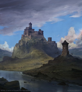 Ashemark is the castle of House Marbrand in the westerlands.[1] Located in hilly terrain, the castle is situated southeast of the Crag, northwest of the Golden Tooth, and north of Sarsfield.[2]
