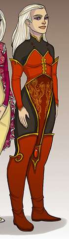 Lady Baela Targaryen was a daughter of Prince Daemon Targaryen and Lady Laena Velaryon.[1] Her twin sister was Rhaena Targaryen. She was a dragonrider, whose dragon was Moondancer.[1]