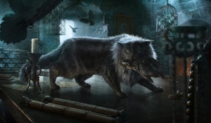 That's the real king of this castle right there, older than sin and twice as mean. One time, the king was feasting the queen's father, and that black bastard hopped up on the table and snatched a roast quail right out of Lord Tywin's fingers. Robert laughed so hard he like to burst. You stay away from that one, child.[2]