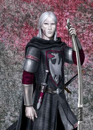 Brynden lost an eye during the First Blackfyre Rebellion and rarely covered the empty socket with a patch, preferring to display his scar and empty socket to the world.[12] He wore his white hair straight and to his shoulders, with the front brushed forward to cover his missing eye.[2][11] Although Brynden carried the Valyrian steel sword Dark Sister and was a good swordsman, he was an expert bowman who preferred to use his tall weirwood longbow.[13]