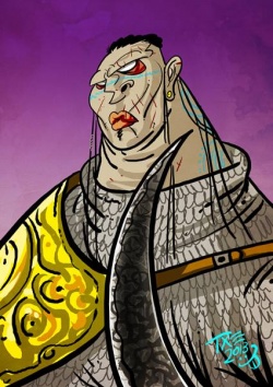 Caggo, also known as Caggo Corpsekiller, is a sellsword of Dothraki origin[3] and a captain of the Windblown.[1] He is the right hand man of the Tattered Prince.[4]