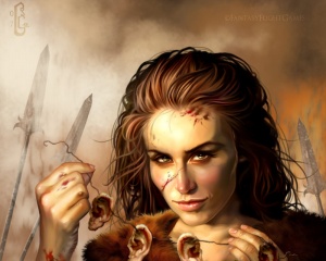 Chella is the daughter of Cheyk and clan chief of the Black Ears, one of the Vale mountain clans.[1] She has sons who have claimed fifty ears between them.[2] She herself has claimed forty-six.[3] In the television adaptation Game of Thrones she is portrayed by Natalie Lee.