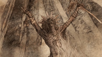 The children again warred with humans when the Andals began migrating from Andalos across the narrow sea to Westeros. Zealous in the Faith of the Seven and armed with steel, having learned of ironworking from the Rhoynar,[25] the Andals resumed the cutting down and burning of weirwoods.[26]