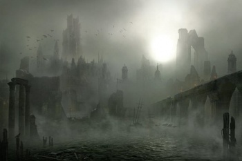 Chroyane of old was said to have streets made of water and houses of gold.[2] It now contains sunken statues and temples, green obelisks, upended trees, and broken spires and marble stairs. Two places of note are the island ruins of the Palace of Love, now called the Palace of Sorrow, and the Bridge of Dream, where stone men tend to roam.[3]