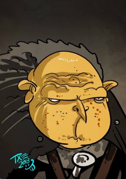 Short and chinless, Clydas is considered ugly by Jon Snow.[2] A few white hairs still cling to his scalp.[3] Clydas has pink, weak eyes[2] and is hunched[4] with rounded shoulders.[5]