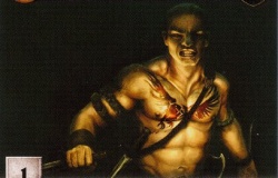 He is tall, with a broad chest tattooed with a bird of prey. His head is shaved and he wears rings of gold, jade, and jet on his arms.[1]
