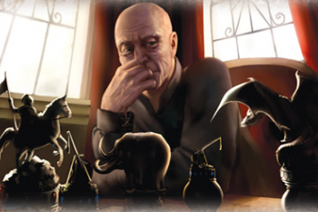 Cyvasse is played during Tyrion Lannister's voyage on the Shy Maid with Haldon[6] and Young Griff, and he learns the game.[5] While playing against Haldon, Tyrion places a bet, and wins the game, thereby learning from Haldon the true identity of Young Griff. In the game against Young Griff, Tyrion tells the boy to go to Westeros, instead of seeking the hand of Queen Daenerys Targaryen. Later on, when he is separated from Young Griff's group, Tyrion learns that Young Griff actually listened.[3] Tyrion, under Haldon's direction, plays against the custom officer Qavo Nogarys in Volantis, in order to gain information from him.[5]