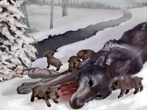 Dead direwolf with pups by Veronica V. Jones © Fantasy Flight Games