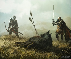 A wounded direwolf by Tomasz Jedruszek © Fantasy Flight Games