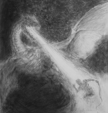 When they espy Rhaegal he is still chained and gnawing on the carcass of a bull.[4] Daenerys lies and tells Quentyn that Drogon is hunting. Rhaegal roars at the sound of her voice and Viserion replies.[citation needed]