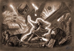 According to legend, in the Age of Heroes, the first Storm King, Durran Godsgrief, won the love of fair Elenei. She gave her maidenhead to him, committing herself to a mortal life. Her divine parents forbade their love, but Durran and Elenei wed despite them. The gods' wrath was terrible to behold, destroying Durran's keep on his wedding night, killing all his family and guests. Elenei protected Durran from the storm, however. Enraged, Durran declared war on the gods, who replied by hammering his kingdom with massive storms. Each time Durran built a castle to face the sea, the gods destroyed it.[1][2]