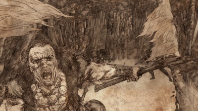 The First Men wielded bronze swords[14] and great bronze axes.[25][26] They were armored in bronze as well, [27][28] carrying large, leather shields.[14] At the time of the Andal invasion, the First Men still fought in bronze;[29] However, in time, Andal blacksmiths taught the First Men to arm and armor themselves in iron instead.[27] The First Men rode horses into battle.[14][28]