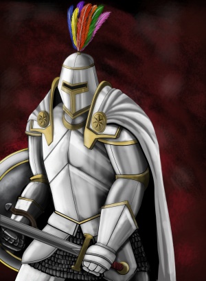 Meanwhile, in King's Landing, the death of Ser Arys Oakheart in Dorne leaves a vacancy on the Kingsguard. The imprisoned Queen Cersei Lannister requests that the white cloak be brought to Qyburn,[35] who unveils an enormous eight-foot-tall knight encased from head to heel in gleaming white armor.[36]