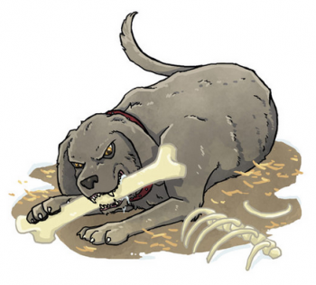Grey Jeyne and Maude kill one of Lord Harwood Stout's hounds over a meaty bone that Will Short tosses to them while at Ramsay Bolton's feast at Goldgrass.[1]