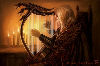 At the welcoming feast, the prince had taken up his silver-stringed harp and played for them. A song of love and doom, Jon Connington recalled, and every woman in the hall was weeping when he put down the harp.[20]