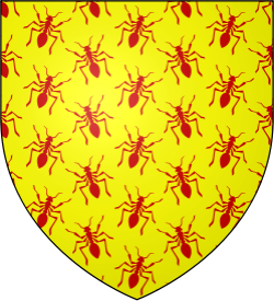 A yellow field strewn with red ants (Or, semé of ants gules) |