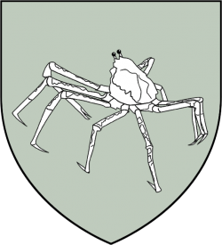 A white spider crab, on a grey-green field (Vert-cendrée, a spider crab argent) |