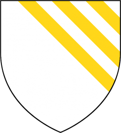 Three golden enhanced bendlets on a white shield (Argent, three bendlets enhanced or) |