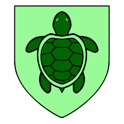 A dark-green sea-turtle on a pale-green field (Vert, a sea-turtle tergiant of the field) |
