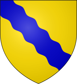 A blue wavy bend, on a gold field (Or, a bend wavy azure) |