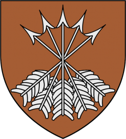 According to semi-canon sources they blazon their arms with five silver arrows, fanned, on brown.[3] Their motto does not appear in the books.
