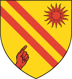 | Coat of arms | Or, two bendlets between in base dexter a hand pointing to chief sinister, and in chief sinister a sun in splendour gules |