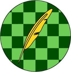 A golden quill on checkered dark and light green (Chequy vert and vert of a paler variety, a quill or) |