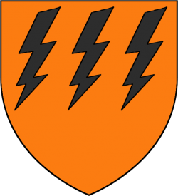 Three black thunderbolts on orange (Tenné, three thunderbolts sable) |
