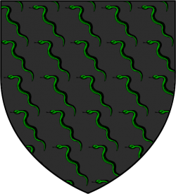 A black field strewn with green vipers (Sable, semé of snakes vert) |