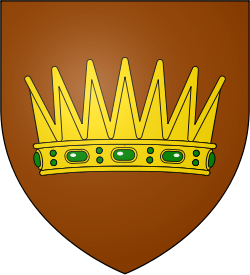 A golden crown studded with emeralds, on a red-brown field (Brunâtre, an ancient crown or studded with emeralds proper) |