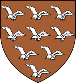 Nine white seagulls on a field of brown (Brunâtre, nine seagulls argent) |