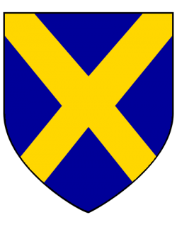 Oak saltire on blue (Azure, a saltire brunâtre) |