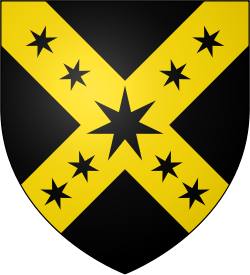 They blazon their arms with nine stars, one of 7 points and eight of 6 points, upon a gold saltire on black. [2][3] Their motto does not appear in the books.