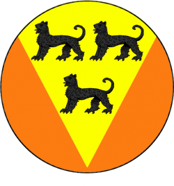 Neither their arms nor words appear in the books, but according to a semi-canon source they blazon their shield with three black leopards standing on a yellow pile on orange.[3]