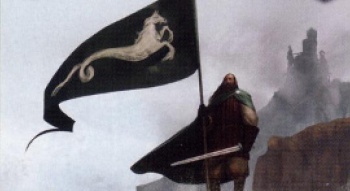 House Velaryon of Driftmark rules the island of Driftmark, the largest island of Blackwater Bay in the crownlands. Their castles include Driftmark and High Tide.[1] The head of House Velaryon is titled Lord of the Tides and Master of Driftmark.[2] The Velaryons are sworn to Dragonstone.[3] Their arms depict a silver seahorse on sea green.[4][5][N 1] Their words do not appear in the books, but according to semi-canon sources they are "The Old, the True, the Brave".[6] A traditional name of the Velaryons is Jacaerys.[7]