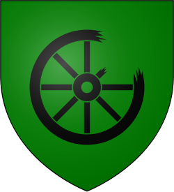 A broken black wheel, on a green field (Vert, a wheel broken sable) |