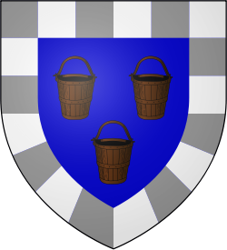 They blazon their banners with three wooden buckets, brown on blue, with a border of grey and white checks.[3][2]