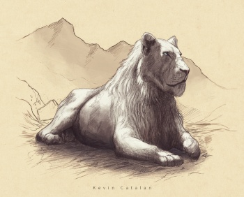 Within the House of the Undying in Qarth, Daenerys has a series of visions, one of which features a white lion.[3]