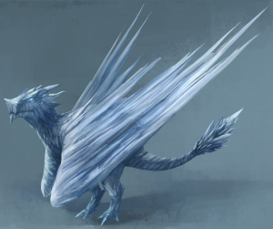 Ice dragons are said to roam the Shivering Sea and the White Waste. Reportedly, they are far larger than the dragons of Valyria and are made of living ice, with eyes of pale blue crystal, vast translucent wings, and breath of cold.[1]