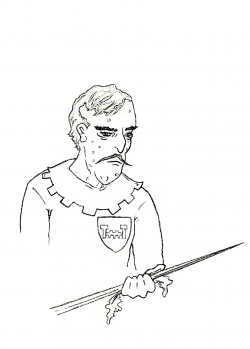 Ser Jared is a tall, stooped man of fifty years.[3] He is balding and pockmarked.[4] The arrogant Jared[5] is lean of limb and clean-shaved, but for a thin grey mustache like a Myrish stiletto.[6]