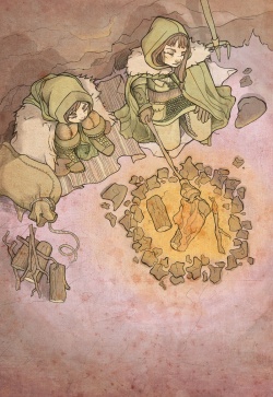 As they move north, Jojen insists that they keep away from roads because roads have travelers that will spread tales about a giant, a cripple boy and a wolf. Summer finds them a cave where they find a Liddle who shares his food and warns the kingsroad has become dangerous. When he states things were different when there was a Stark in Winterfell, Jojen tells him that the wolves will be back. In the morning the man is gone, but he left some food for them.[11]