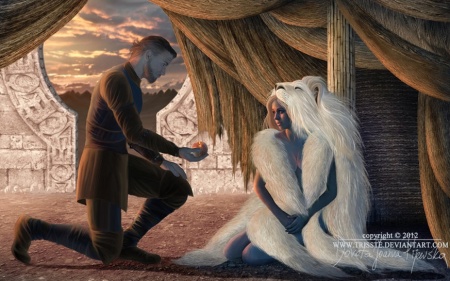 Sometimes he thinks of me as a child he must protect, and sometimes as a woman he would like to bed, but does he ever truly see me as his queen?[25]