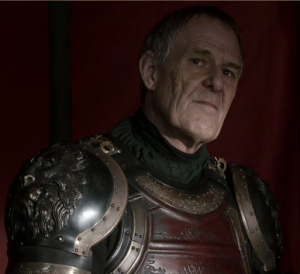 Ser Kevan accompanies his elder brother, Lord Tywin Lannister, when war breaks out in the riverlands after the death of King Robert I Baratheon. The Lannisters capture Raventree and Harrenhal.[5]