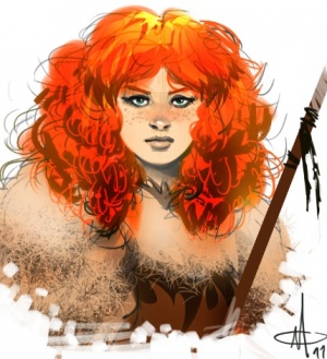 Kissed by fire is a term used by the free folk to describe people with red hair. They consider red hair to be lucky and very attractive. It is rare among the free folk and those who have it are said to be kissed by fire. The spearwife Ygritte is considered common looking by Jon Snow at first but when he joins the free folk he soon learns that amongst the wildlings she is considered a great beauty due to her red hair.[1]