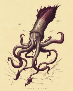 A kraken is a large sea creature, similar to a giant squid, said to be able to pull down a whaling ship.