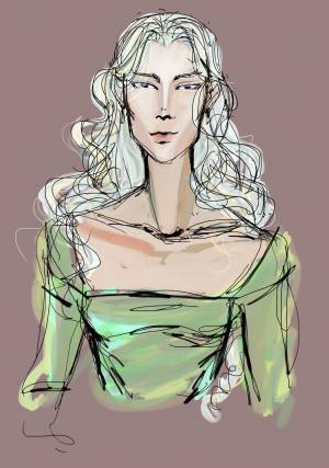 Laena was tall, slender, and surpassingly lovely with a great mane of silver-gold ringlets that fell down past her waist. It was said she had inherited the beauty of her mother, Princess Rhaenys Targaryen, the Queen who Never Was, and the adventurous spirit of her father, Lord Corlys Velaryon, ruling Lord of the Driftmark.[2]